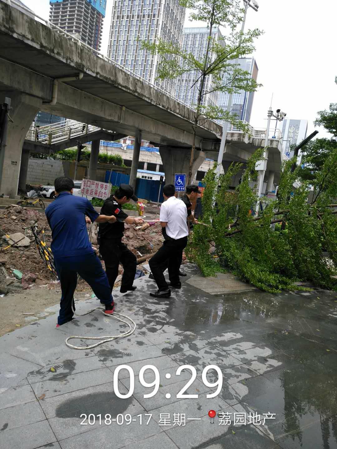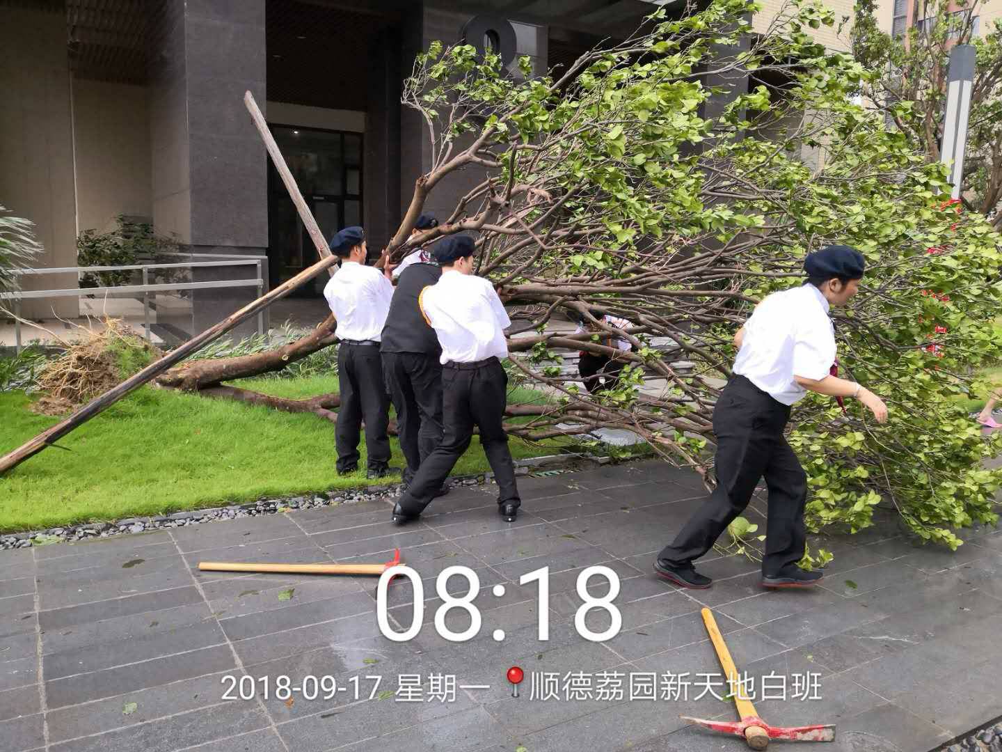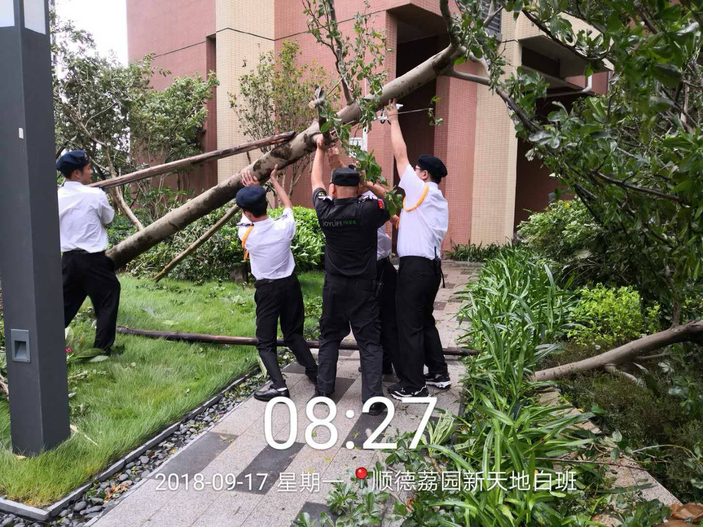 安保和后勤的值守工作人员,冒着风雨抢险救灾,保证交通顺畅,狂风中,他们迎风而上, 不怕脏不怕累,众志成城,任功任怨的羊城安保精神,值得表扬!